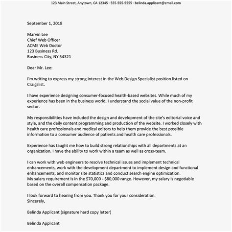 Sample Of Cover Letter With Salary Requirements. Cover Letter Examples See perfect cover letter samples that get jobs. Use different cover letter salary expectations for different individual jobs that you are applying for.