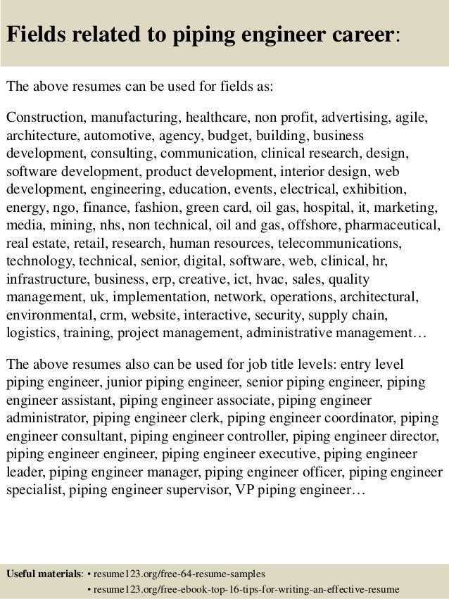 Top 8 piping engineer resume samples