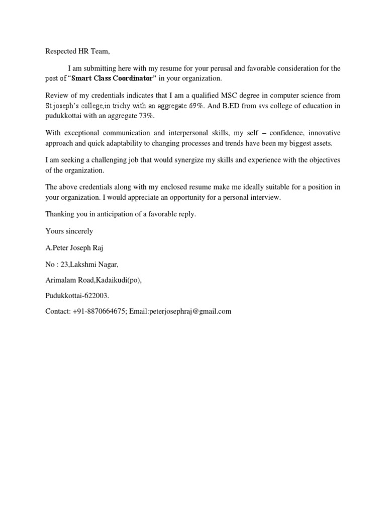Cover Letter Communication Skills - Sample Cover Letter