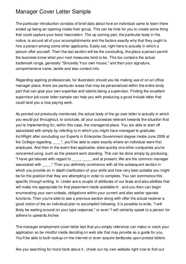 Manager Cover Letter Sample